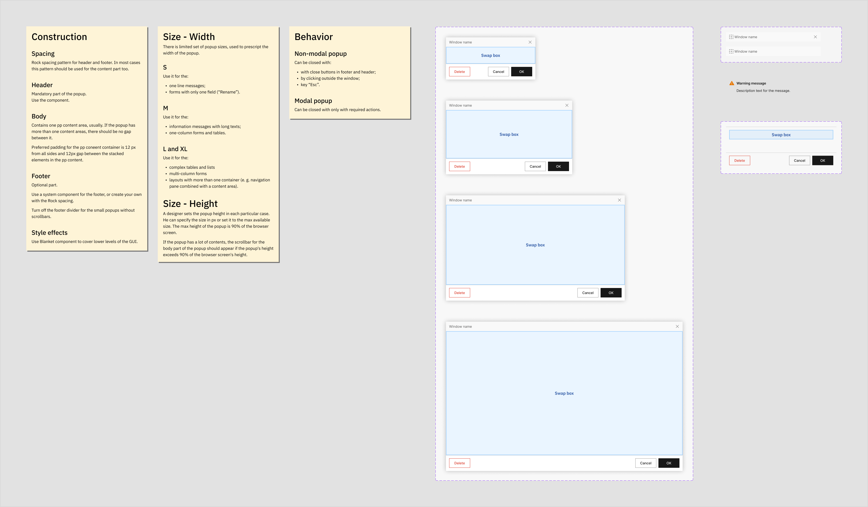 Для крупных компонентов, таких как диалоговые окна, используются swap-компоненты.